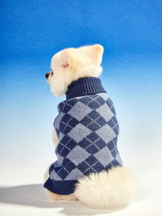 Blue Plaid Pet Sweater